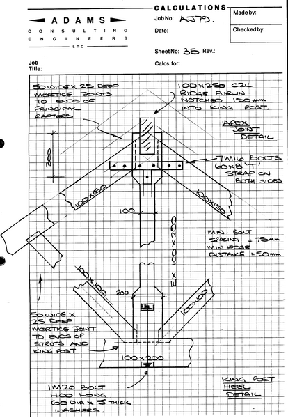 The diagrams below are from the engineers, and show the design of the new oak roff truss. There are many pages of caculatiosn, which I don't understand, and I have not shown.