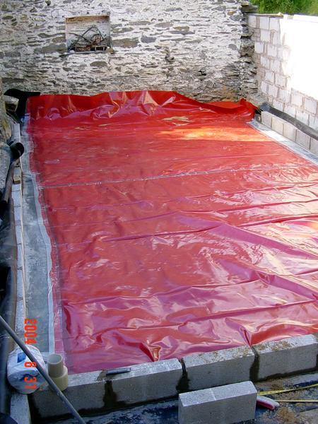 Once the dirt was level and firm, we had to fit the DPM, which also acts as a radon barrier. We purchased the Visqueen Radon product for this. What fun this is, you have to use two types of sticky tape to join the DPM into the DPC. I concluded that building sites and sticky tape do not mix. The dust rurins the stick.
